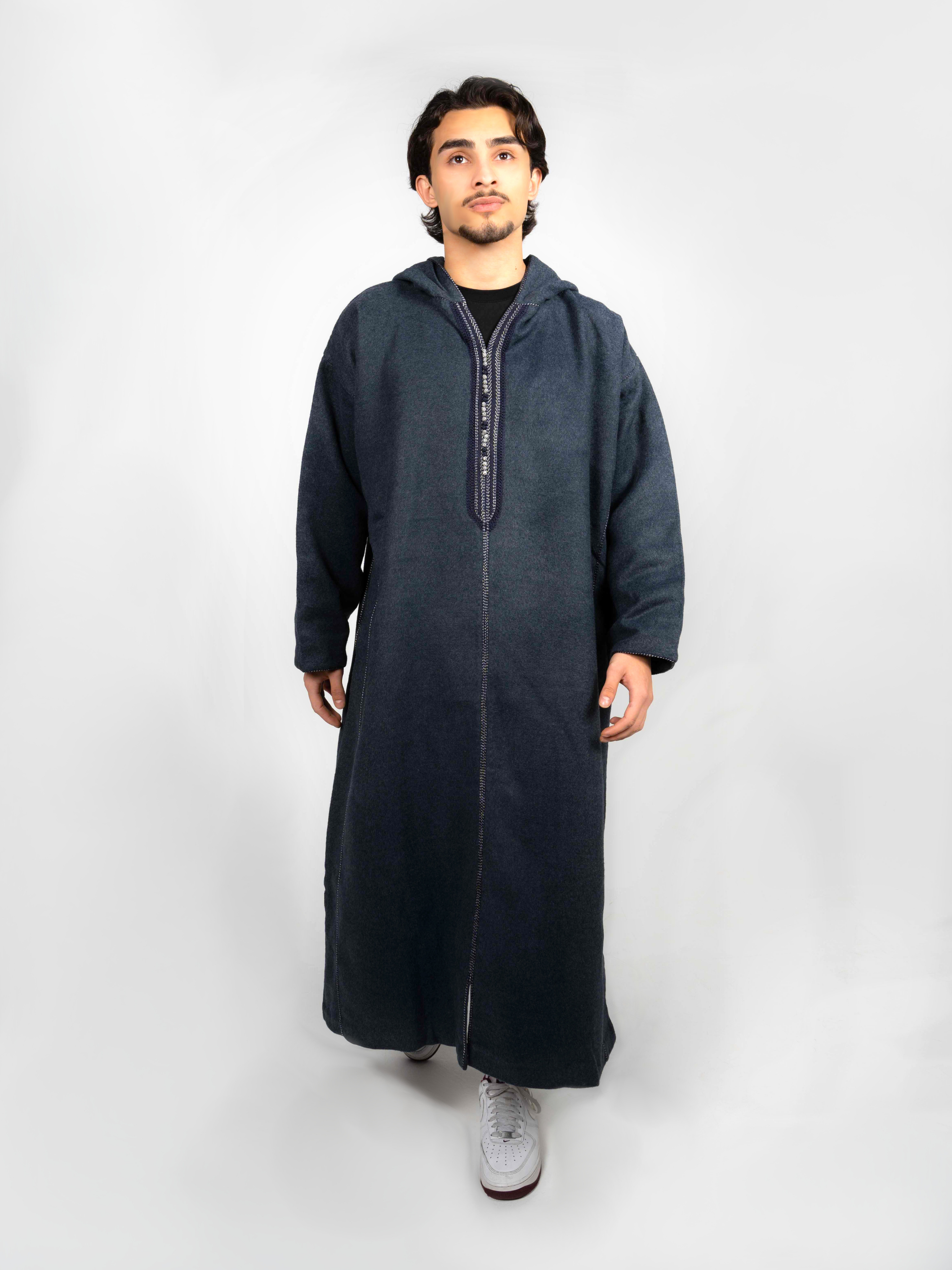Step into elegance with the Sultan, a thobe that carries the weight of its name—regal, bold, and unapologetically powerful. Crafted from 100% local Moroccan cashmere, it wraps you in warmth with its thick, wool-like texture, perfect for cooler days and long Ramadan nights.