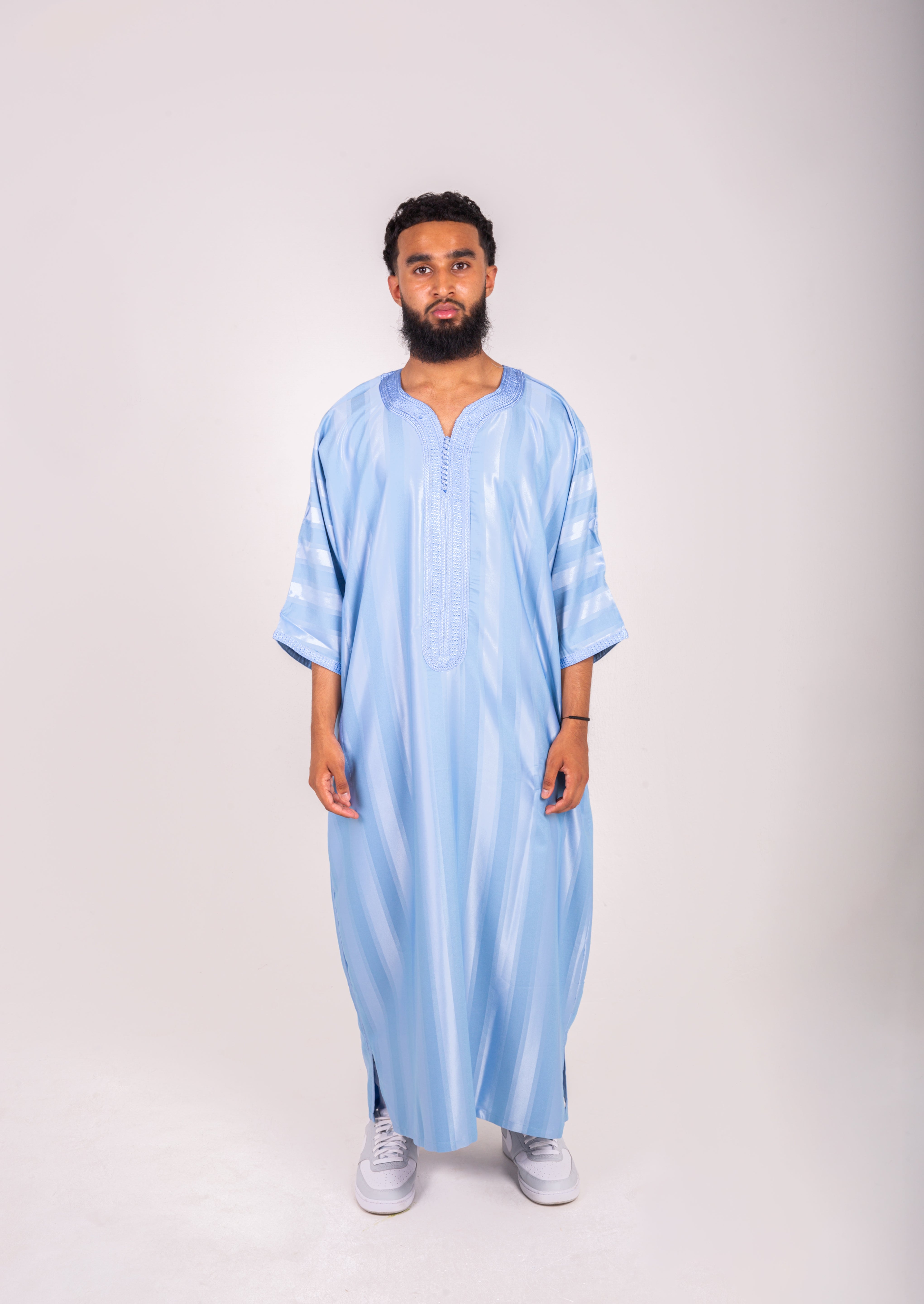 - Detailed chest embroidery inspired by Moroccan heritage