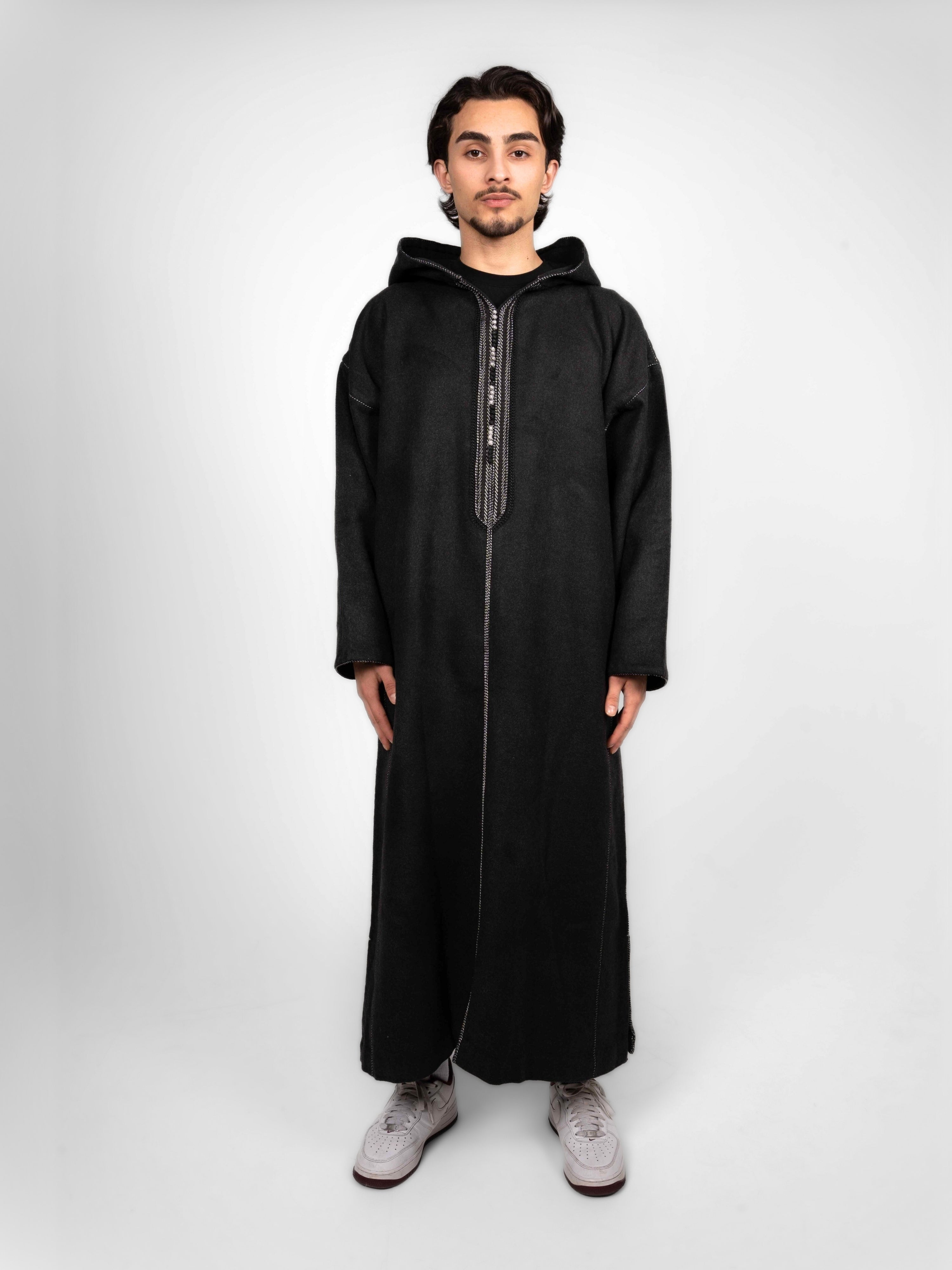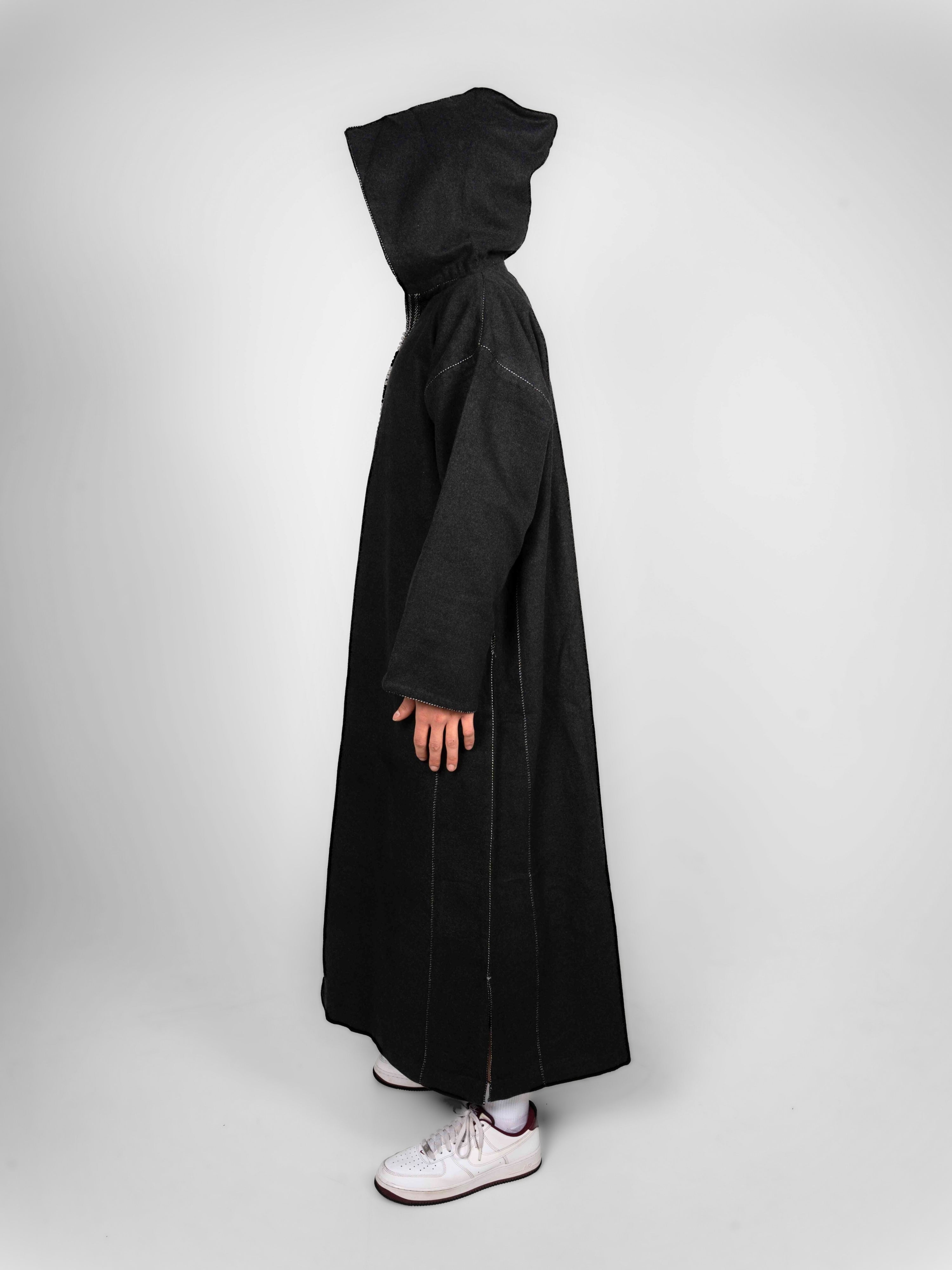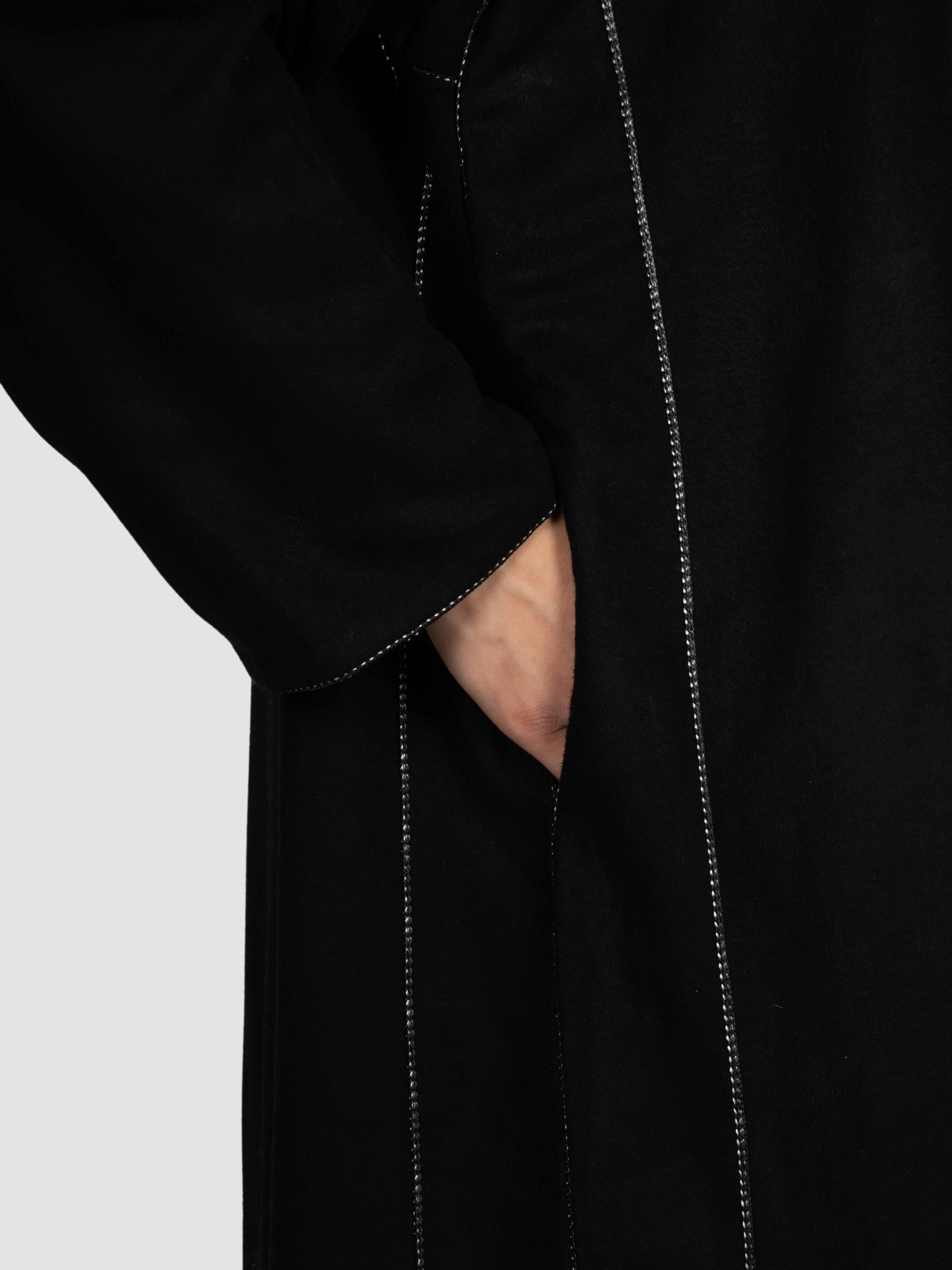 Step into the elegance of the night with Layl, our 100% Moroccan cashmere thobe. Crafted from thick, wool-like fabric, it wraps you in warmth, making it perfect for cold evenings while maintaining a sleek, oversized silhouette that defines your physique effortlessly.