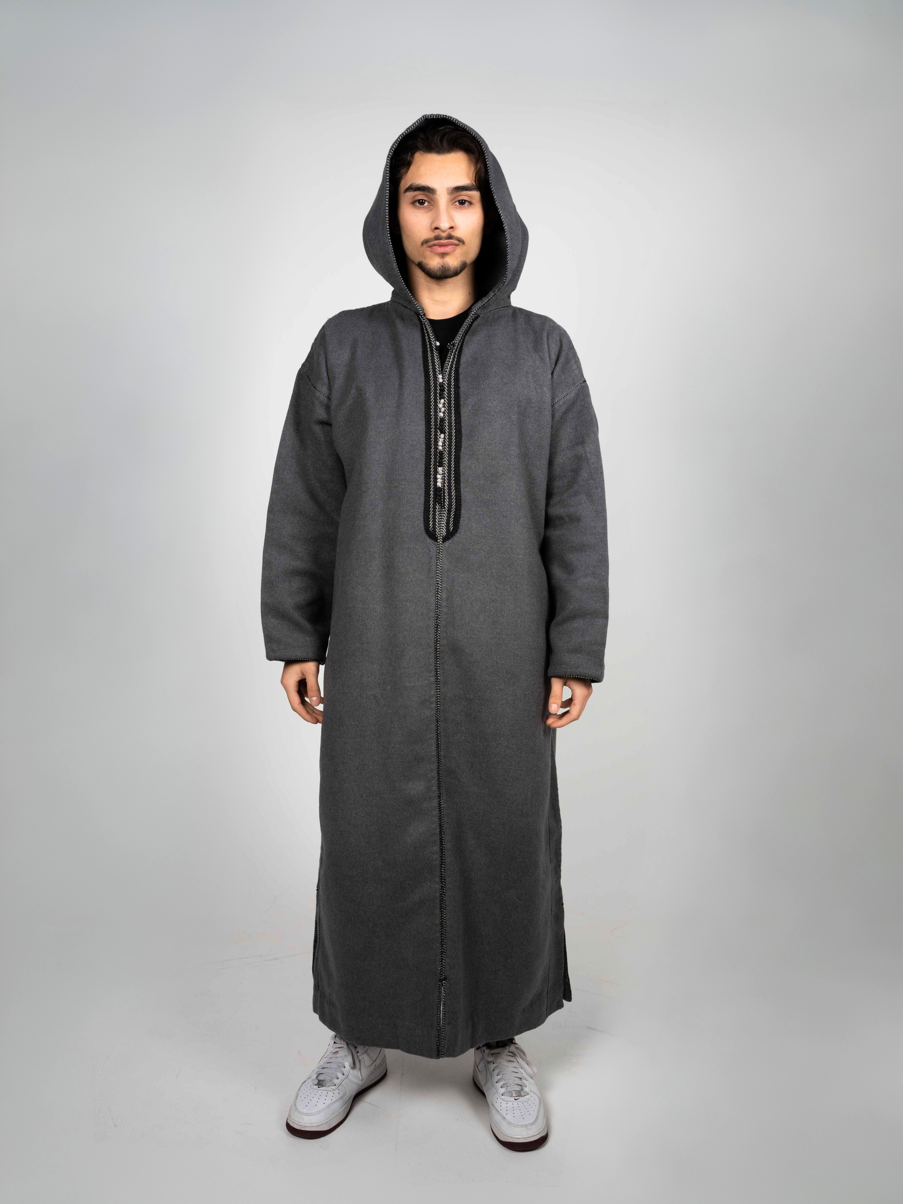 Step into the elegance of the night with QAMAR, our 100% Moroccan cashmere thobe. Crafted from thick, wool-like fabric, it wraps you in warmth, making it perfect for cold evenings while maintaining a sleek, oversized silhouette that defines your physique effortlessly.